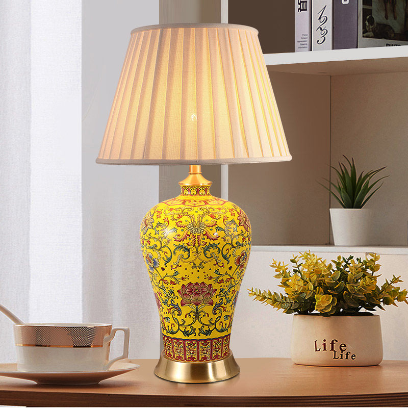 Dimensions: Yellow ceramic + octagonal lampshade; yellow ceramic + pleated lampshade; red ceramic + octagonal lampshade; red ceramic palace-style lampshade—diameter 40 cm, height 70 cm; pleated lampshade—diameter 40 cm, height 70 cm