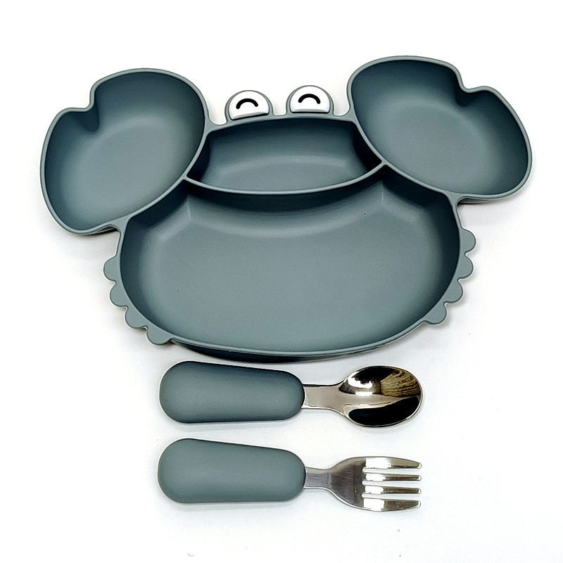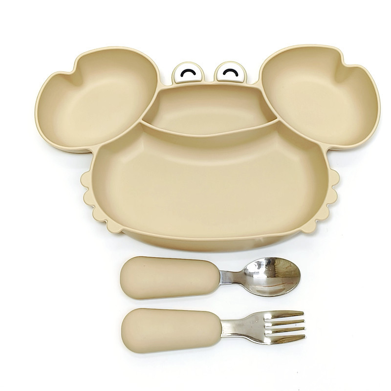 Color: Off-white (4-compartment crab plate with round stainless-steel forks and spoons), Sky blue (4-compartment crab plate with round stainless-steel forks and spoons), Navy blue (4-compartment crab plate with round stainless-steel forks and spoons), Wine red (4-compartment crab plate with round stainless-steel forks and spoons), Silver gray (4-compartment crab plate with round stainless-steel forks and spoons), Light brown (4-compartment crab plate with round stainless-steel forks and spoons), Olive green (4-compartment crab plate with round stainless-steel forks and spoons), Orange (4-compartment crab plate with round stainless-steel forks and spoons), Peach (4-compartment crab plate with round stainless-steel forks and spoons)