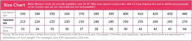 Sizes: 34, 35, 36, 37, 38, 39, 40 — Custom orders are non-returnable and non-exchangeable; 41 — Custom orders are non-returnable and non-exchangeable; 42 — Custom orders are non-returnable and non-exchangeable; 43 — Custom orders are non-returnable and non-exchangeable; 44 — Custom orders are non-returnable and non-exchangeable; 45 — Custom orders are non-returnable and non-exchangeable; 46 — Custom orders are non-returnable and non-exchangeable; 47 — Custom orders are non-returnable and non-exchangeable; 48 — Custom orders are non-returnable and non-exchangeable