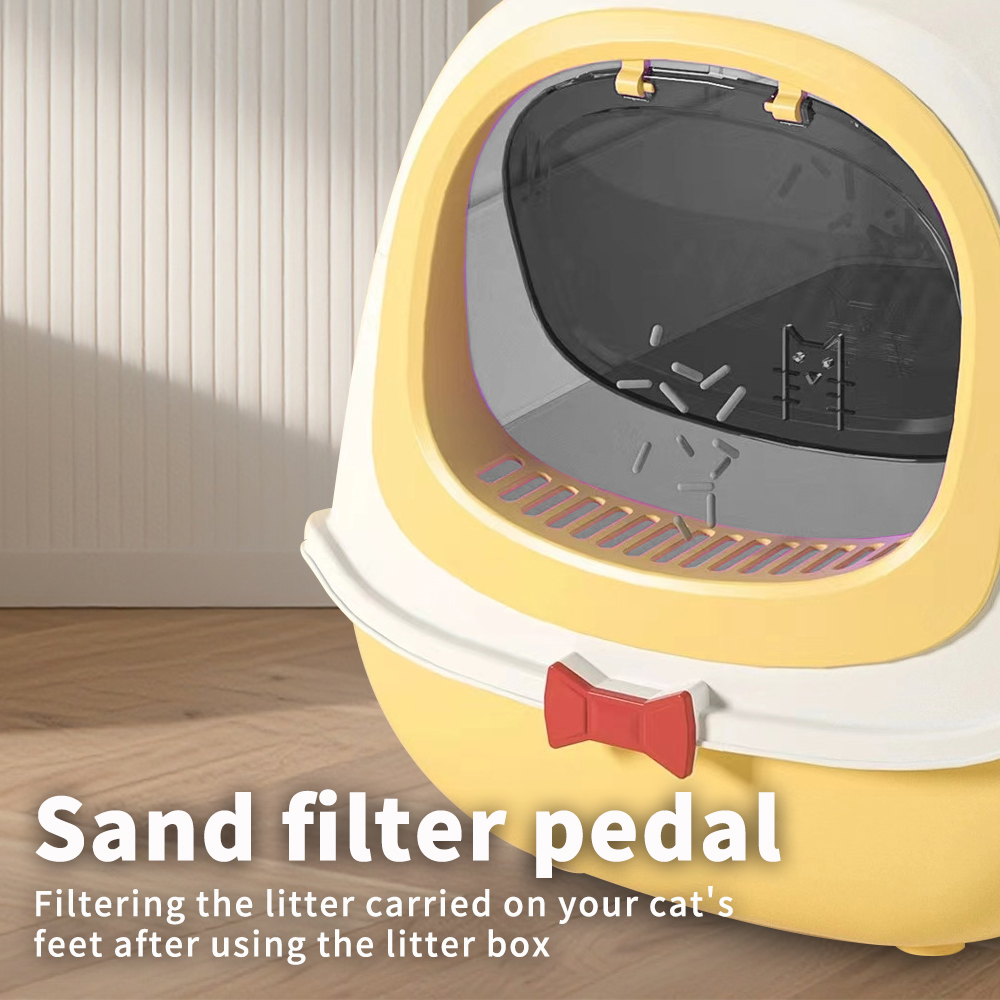 52cm Large Fully Enclosed Flip Cover Cat Litter Box, Anti-Splashing Anti-Tracking Odor Locking Cat Toilet With Free Scoop, Deodorant Pack & Bowtie