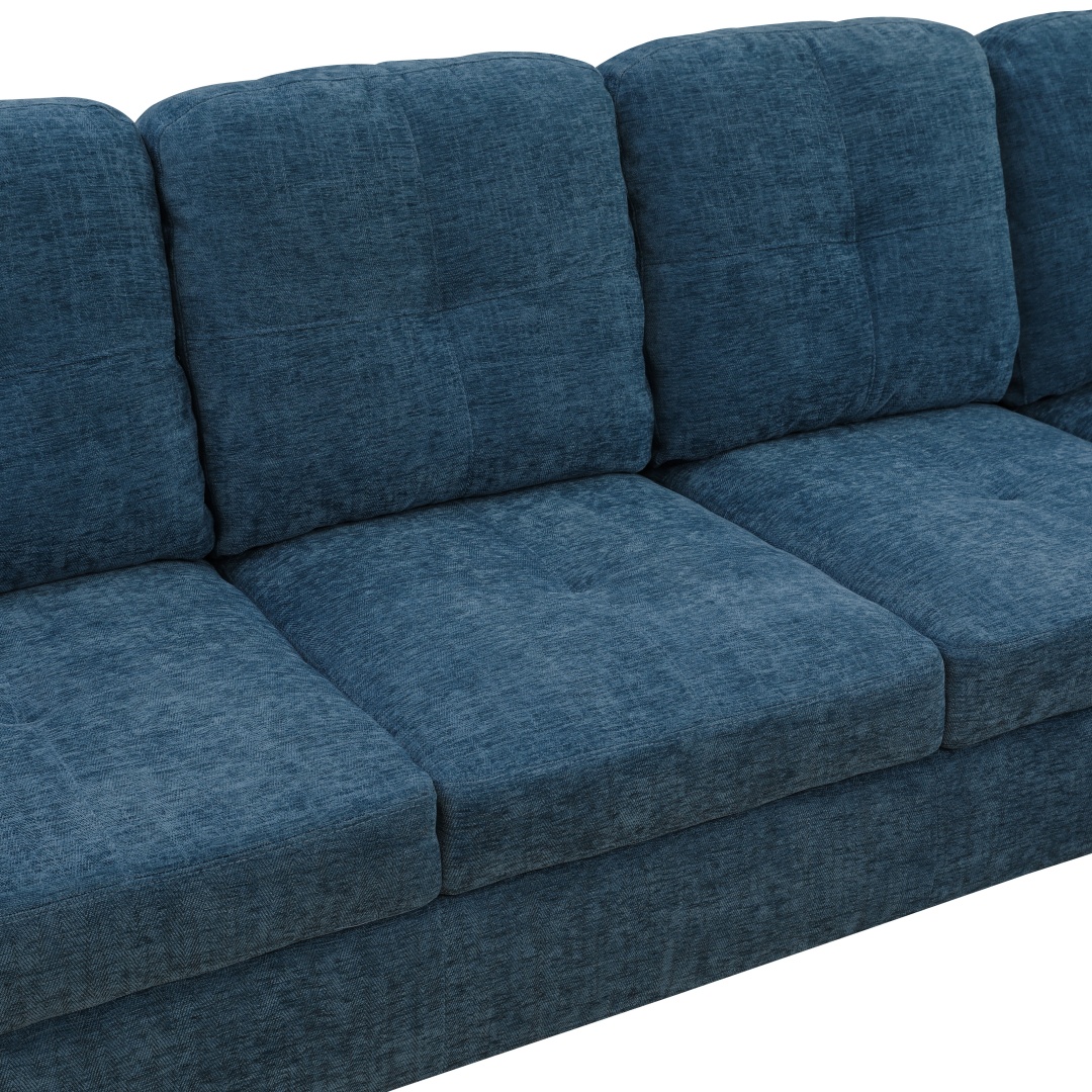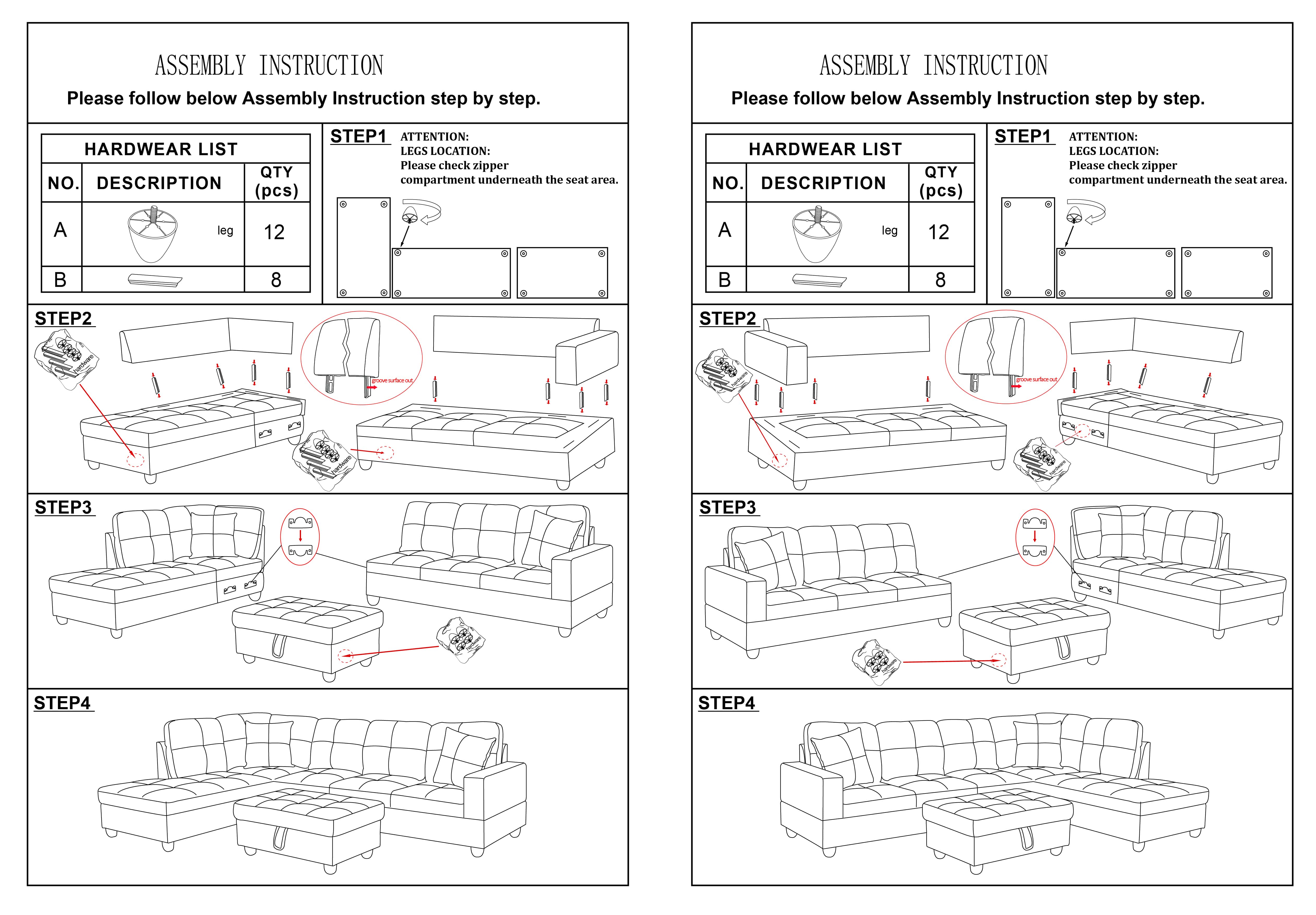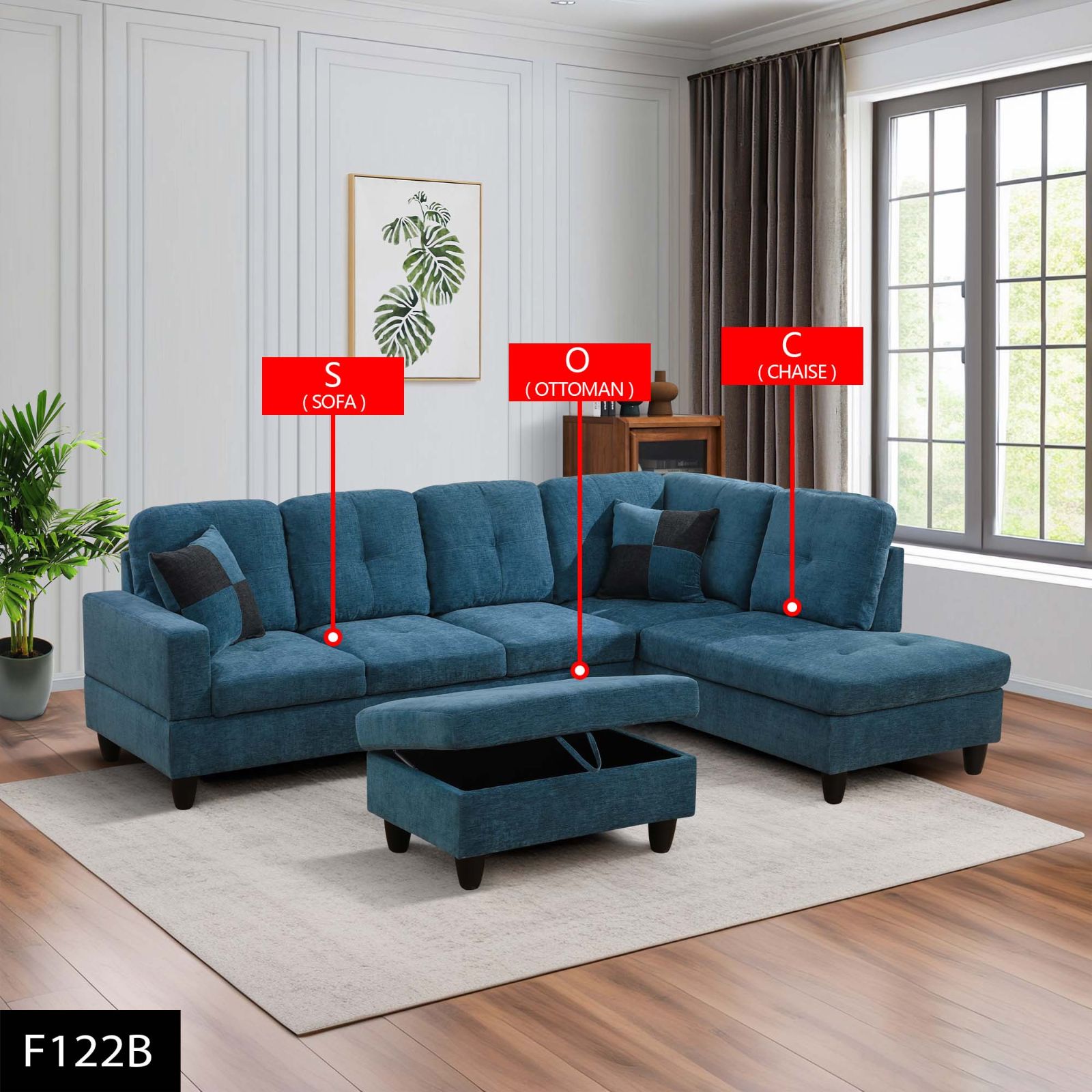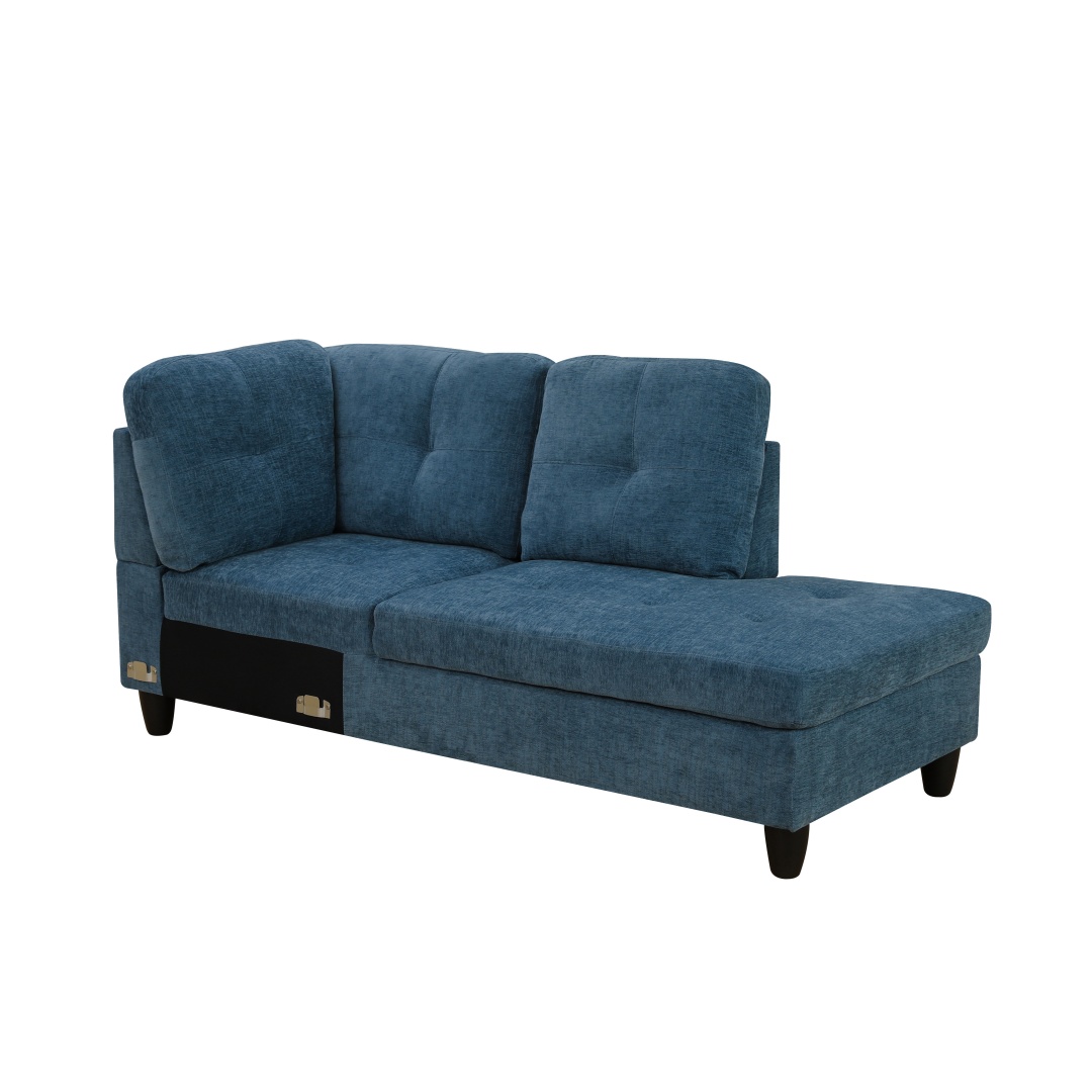 | CHARACTERISTIC | a. The product (Light Blue) made of top material, exquisite materials, fine workmanship b. X style line pressing point concave surface, unique design, smooth line, excellent view, bring the product with strong sense of elegance c. The sofa and chaise can be splited, free combination can meet the demand for usage in different situations, comfortable sitting, durable using, clean design d. The ottoman with storage function, can store daily using small items, which is flexible and convenient |