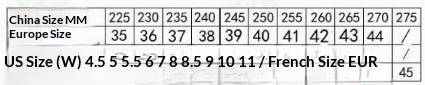 Sizes: 36, 37, 38, 39, 40, 41, 42, 43