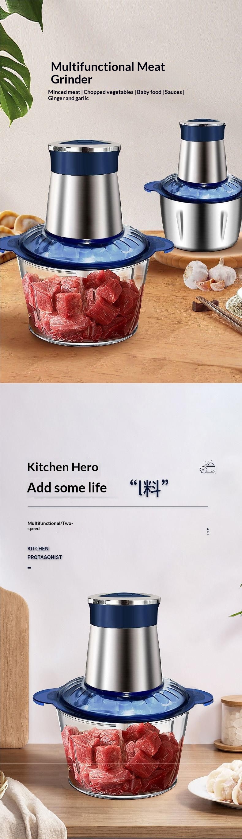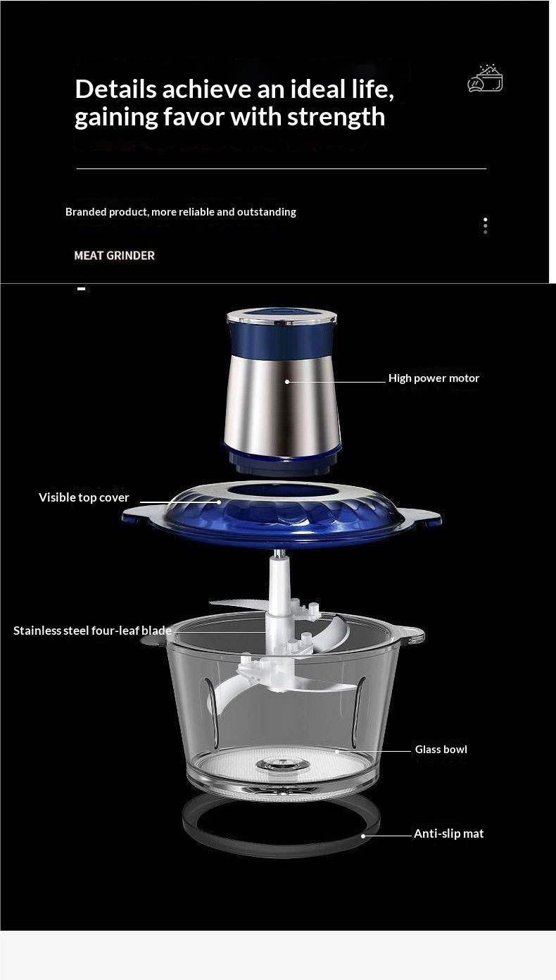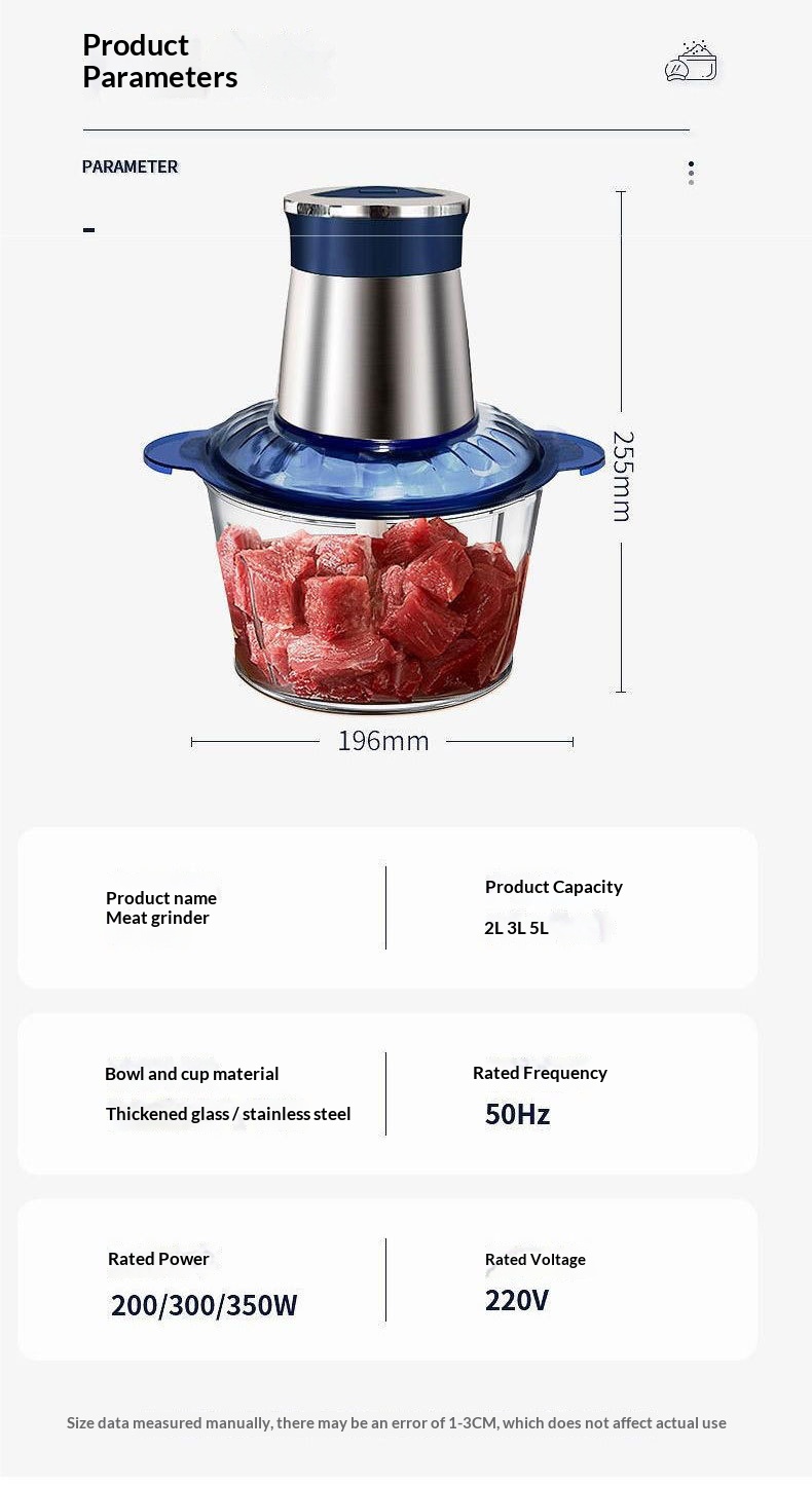 Color: 3-liter blue stainless steel meat grinder, 3-liter blue glass meat grinder