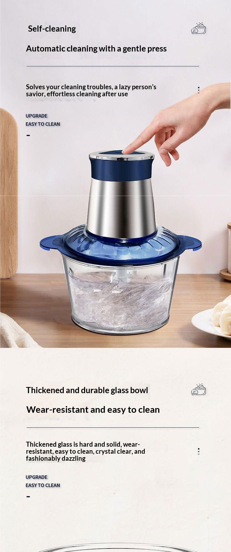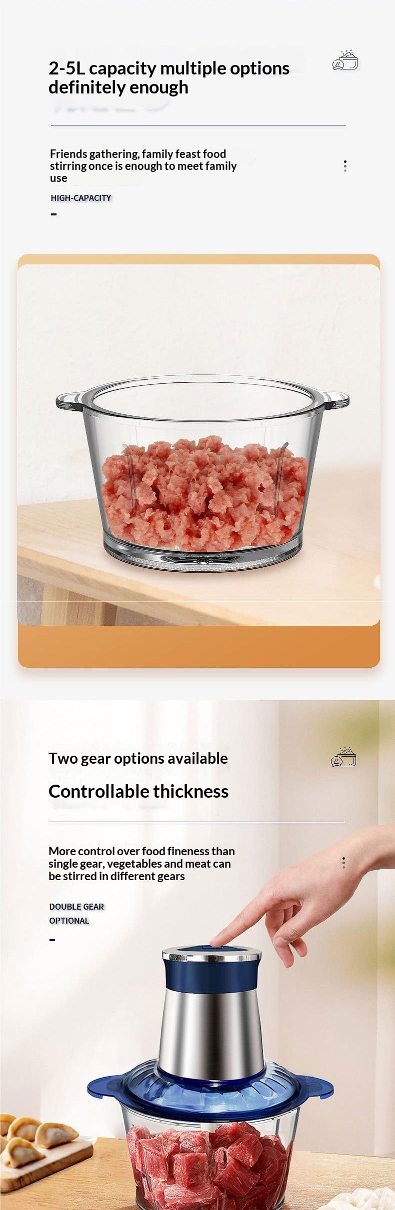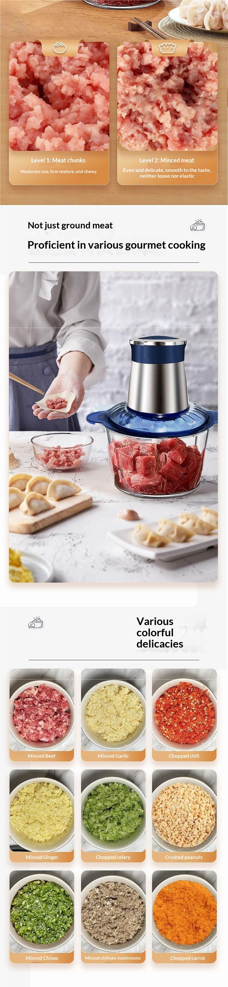 Color: 3-liter blue stainless steel meat grinder, 3-liter blue glass meat grinder